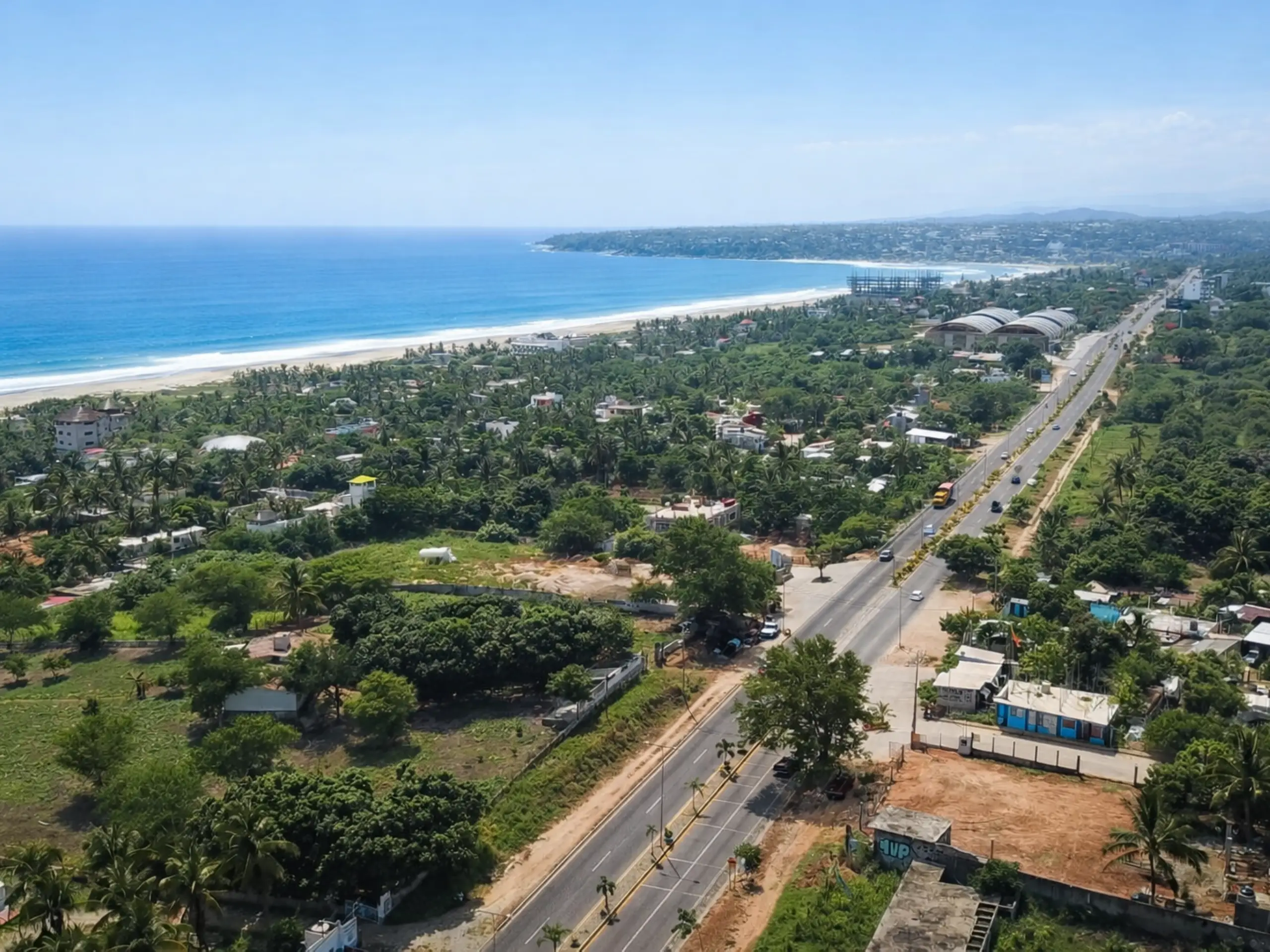 Esta oportunidad se localiza sobre uno de los tramos con mayor visibilidad y flujo del corredor costero de Puerto Escondido, a escasos metros de la entrada estratégica a la zona comercial y turística de Punta Zicatela.